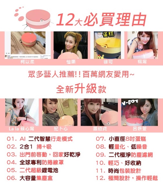 品名:Vbot-超級鋰電池迷你智慧型掃地機器人(2合1)i6蛋糕機
